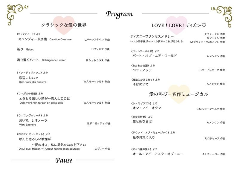 今回は愛をテーマに、クラシックだけでなく、普段はなかなか機会のない