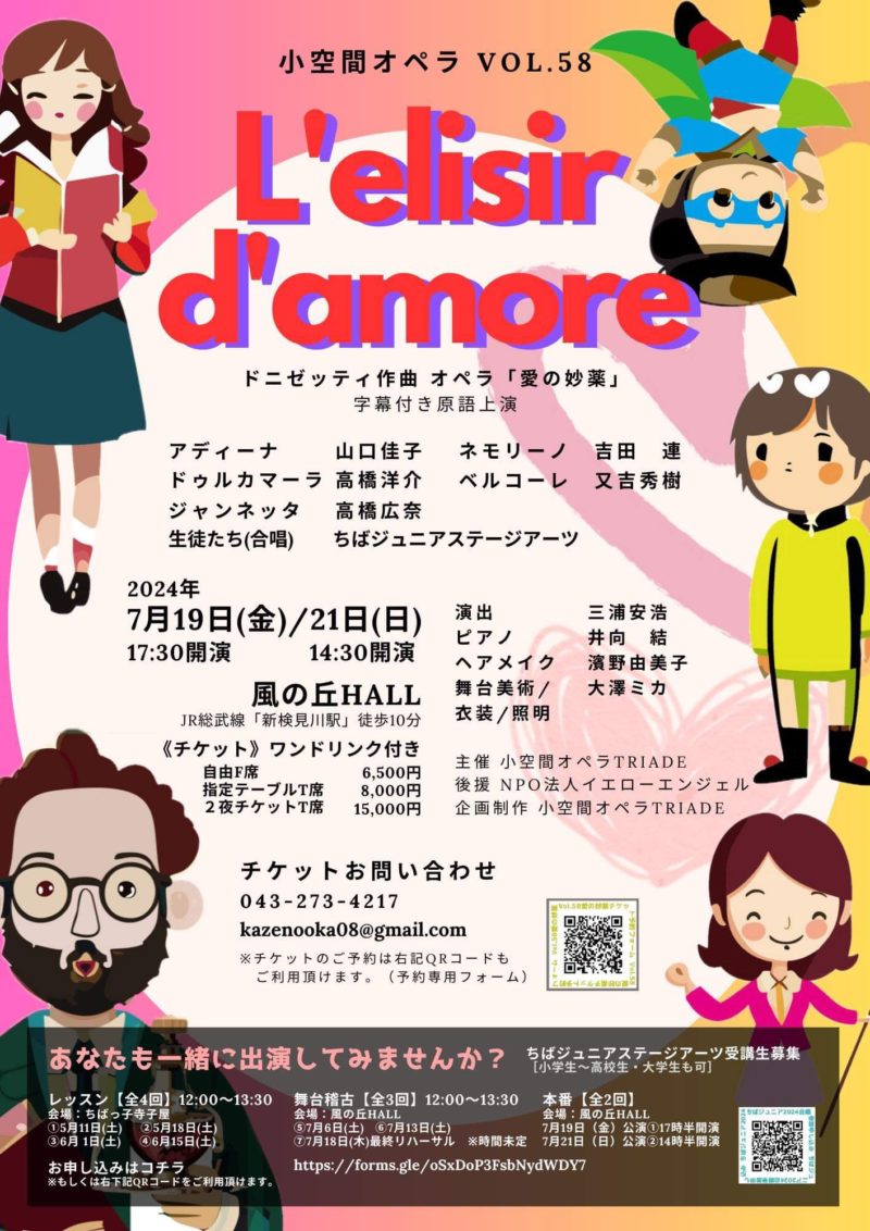 小空間オペラ「愛の妙薬」にジャンネッタ役で出演します😊